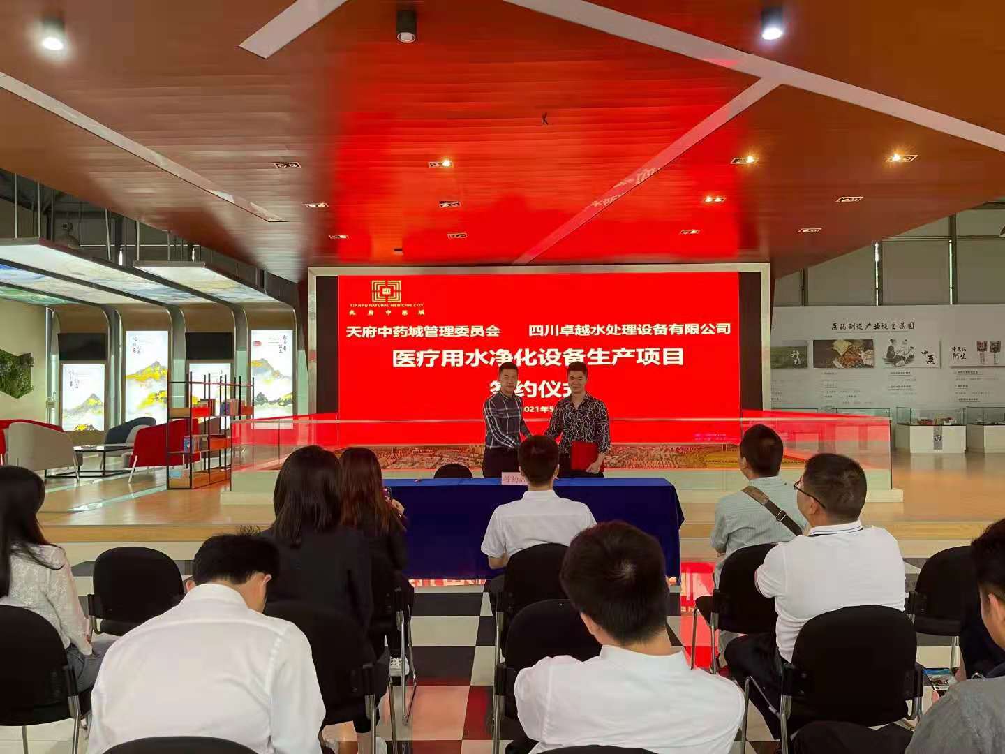 2021年5月25日,四川卓越水處理設(shè)備有限公司彭州新工廠簽約儀式和開(kāi)工慶典在天府中藥城隆重舉行。上午九點(diǎn),由彭州市天府中藥城管理委主辦的“天府中藥城管理委&四川卓越水處理設(shè)備有限公司醫(yī)療用水凈化設(shè)備生產(chǎn)項(xiàng)目”在陣陣掌聲中拉開(kāi)了序幕。